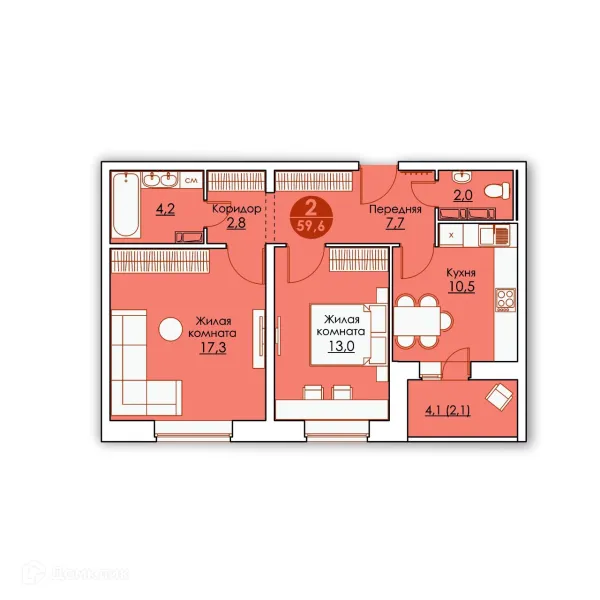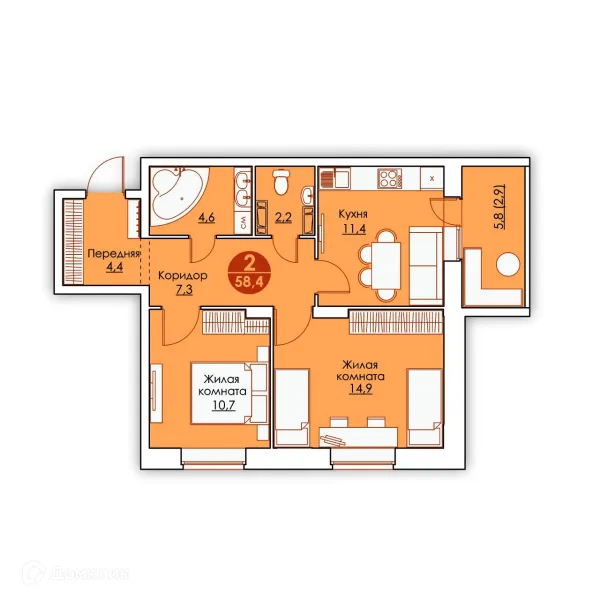 2 комн. квартира в Орле в ипотеку от 33 325 руб/месяц
