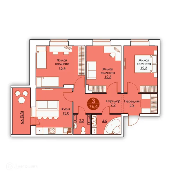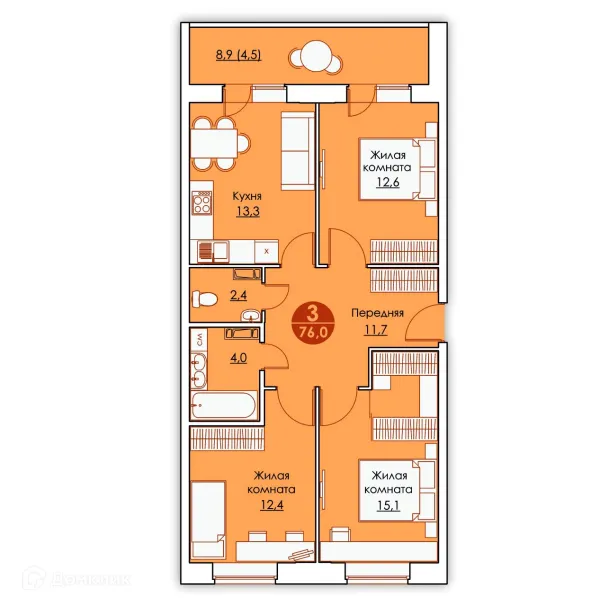 3 комн. квартира в Орле в ипотеку от 47 148 руб/месяц