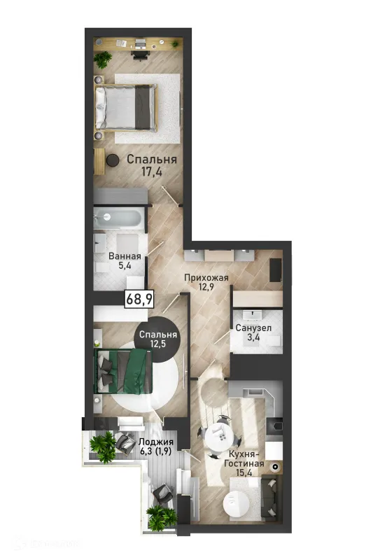 3 комн. квартира в Курске в ипотеку от 78 887 руб/месяц
