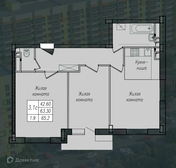 3 комн. квартира в Курске в ипотеку от 71 722 руб/месяц
