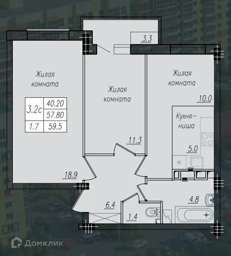 3 комн. квартира в Курске в ипотеку от 21 195 руб/месяц