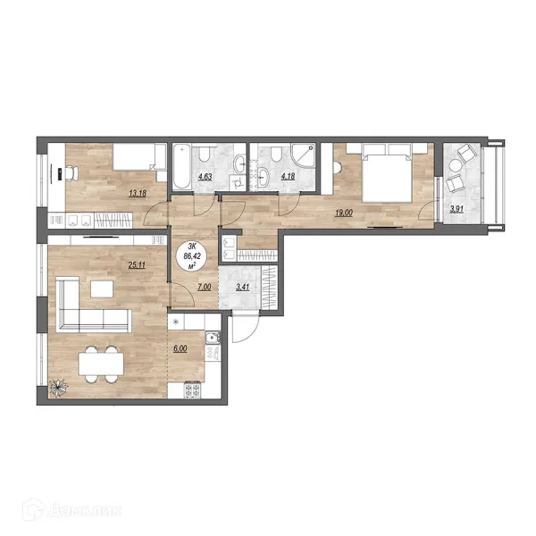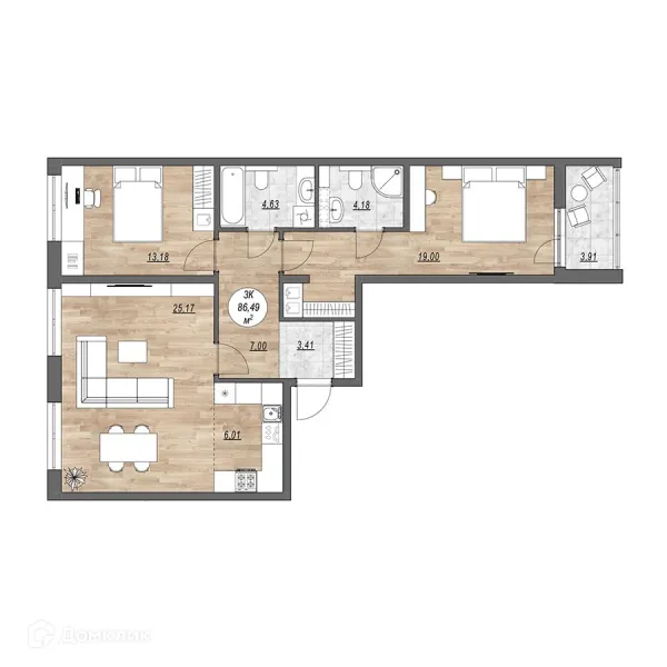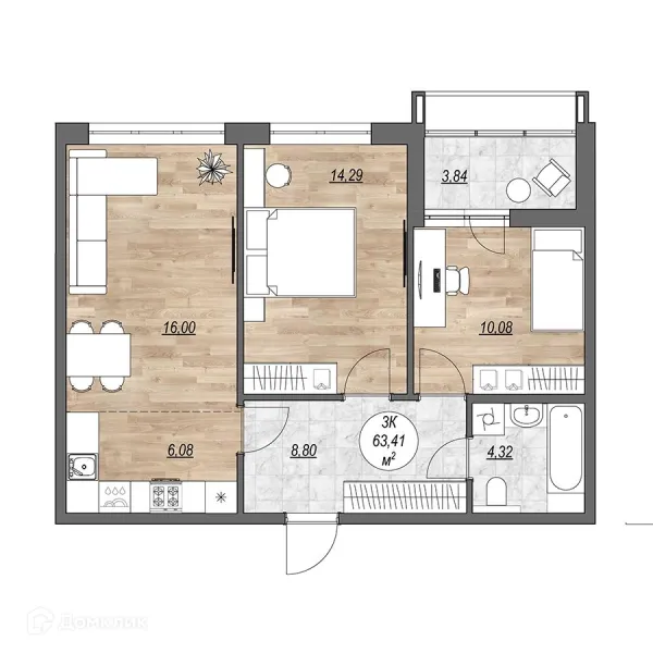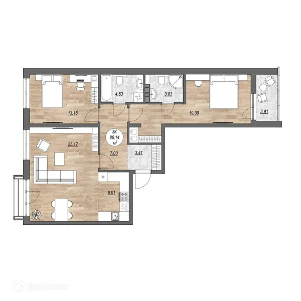 3 комн. квартира в Петрозаводске в ипотеку от 86 484 руб/месяц