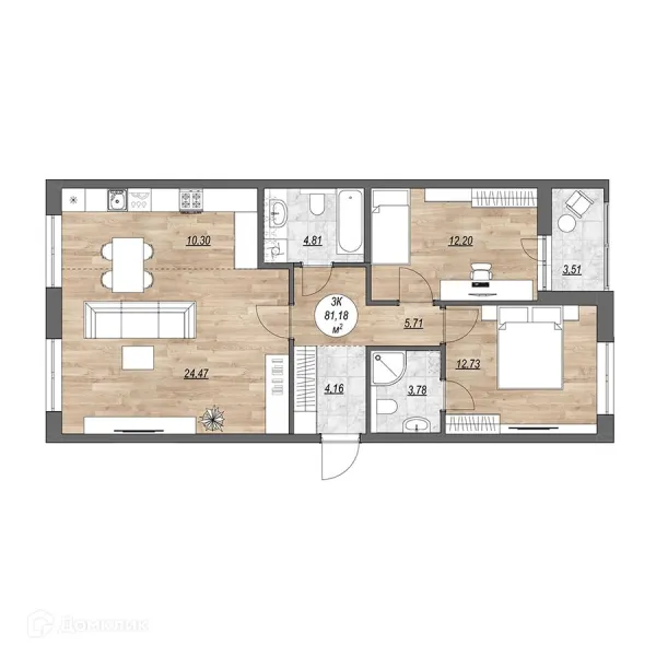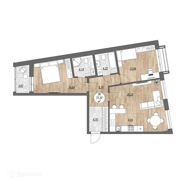 3 комн. квартира в Петрозаводске в ипотеку от 76 712 руб/месяц