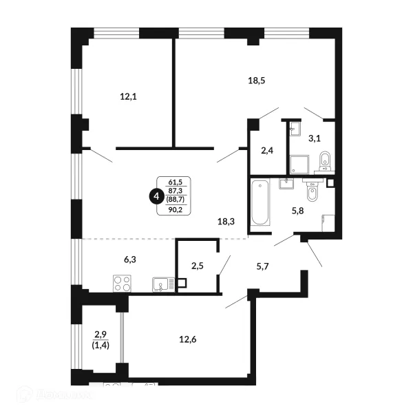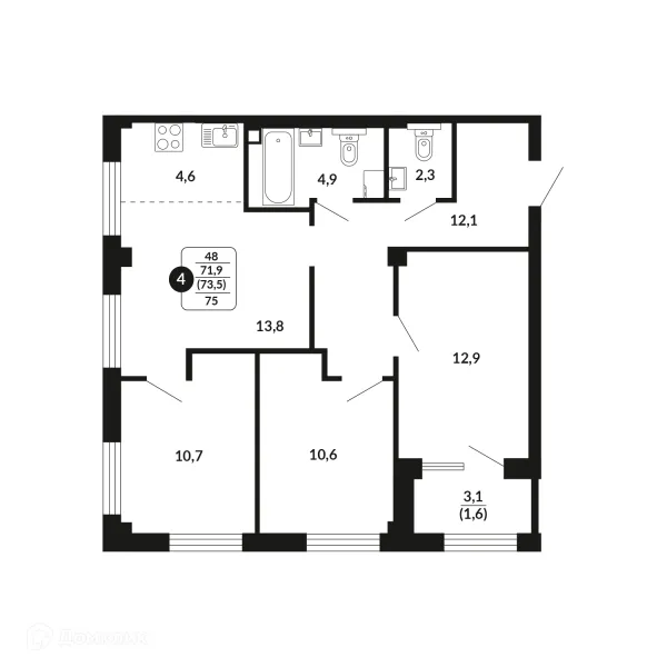 4 комн. квартира в Кирове в ипотеку от 75 156 руб/месяц