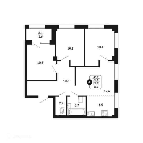 4 комн. квартира в Кирове в ипотеку от 70 793 руб/месяц
