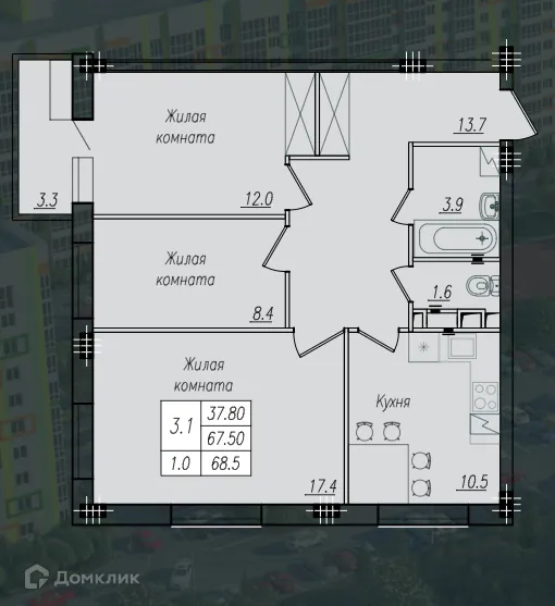 3 комн. квартира в Курске в ипотеку от 21 195 руб/месяц
