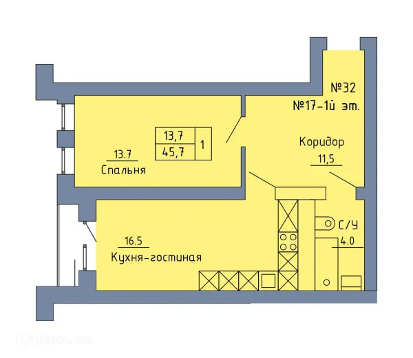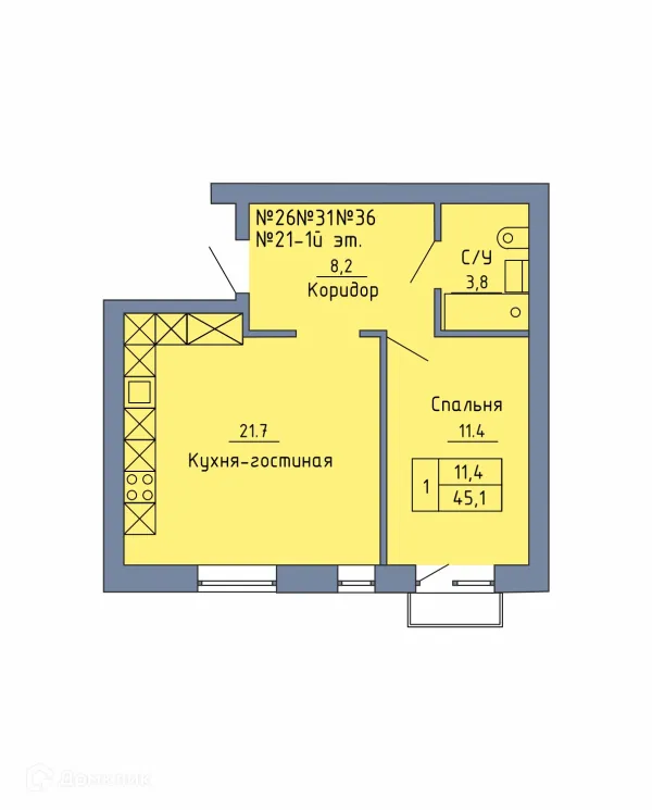 1 комн. квартира в Оренбурге в ипотеку от 45 654 руб/месяц